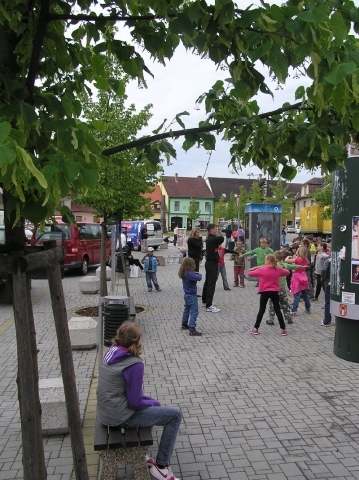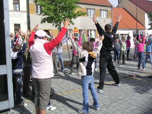 Štafeta probíhala naším městem ve středu 6. června krátce po deváté hodině a k běžci se u benzínové pumpy připojili žáci z vyššího stupně naší školy. Děti z nižššího stupně na štafetu čekaly na náměstí před školou. Aby jim nebyla dlouhá chvíle absolvovaly zatím s účasníky štábu Corpus Domini atletickou rozcvičku. Společně jsme pak přivítali skupinku běžců. Dalším cílem akce byla Třeboň.