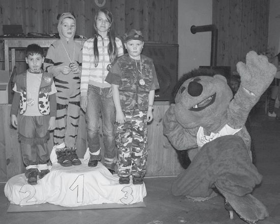 Samozřejmě nechyběl ani ježek Jarda, který s námi dlouhá léta karnevaly rozveseluje. Mezi veselými písničkami probíhaly krátké soutěže a vítězové dostali, tak jako na olympiádě, na stupínku vítězů, fidorkovou medaili.
