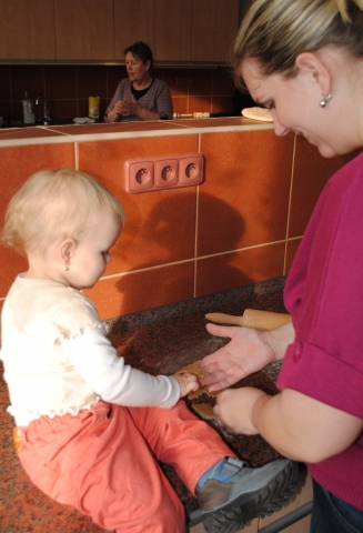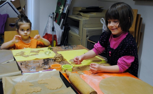 Úterní odpoledne plné dobré nálady, kterou do knihovny a školní kuchyňky přinesla děvčata různého věku a jeden hrdinný mládenec bylo opravdu tvůrčí a výsledkem jsou voňavé perníčky připravené ke zdobení v neděli 22.3.