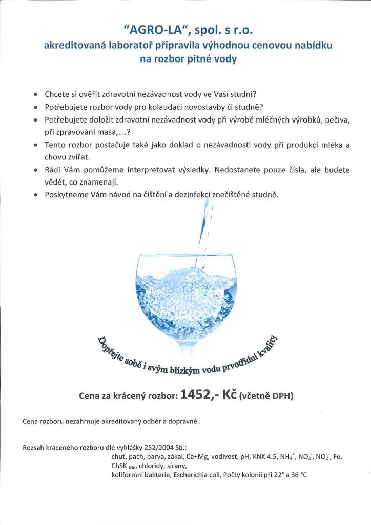akreditovaná laboratoř připravila výhodnou cenovou nabídku na rozbor pitné vody