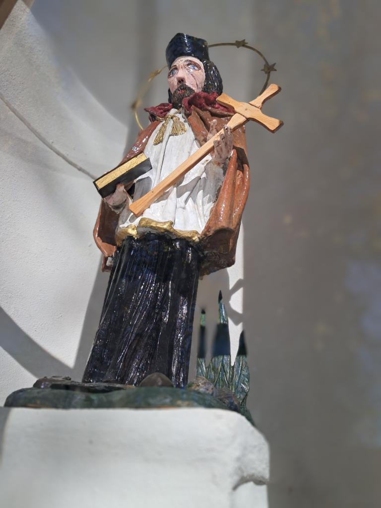 Svatý Jan z Nepomuku, drží létu pevně ruku.